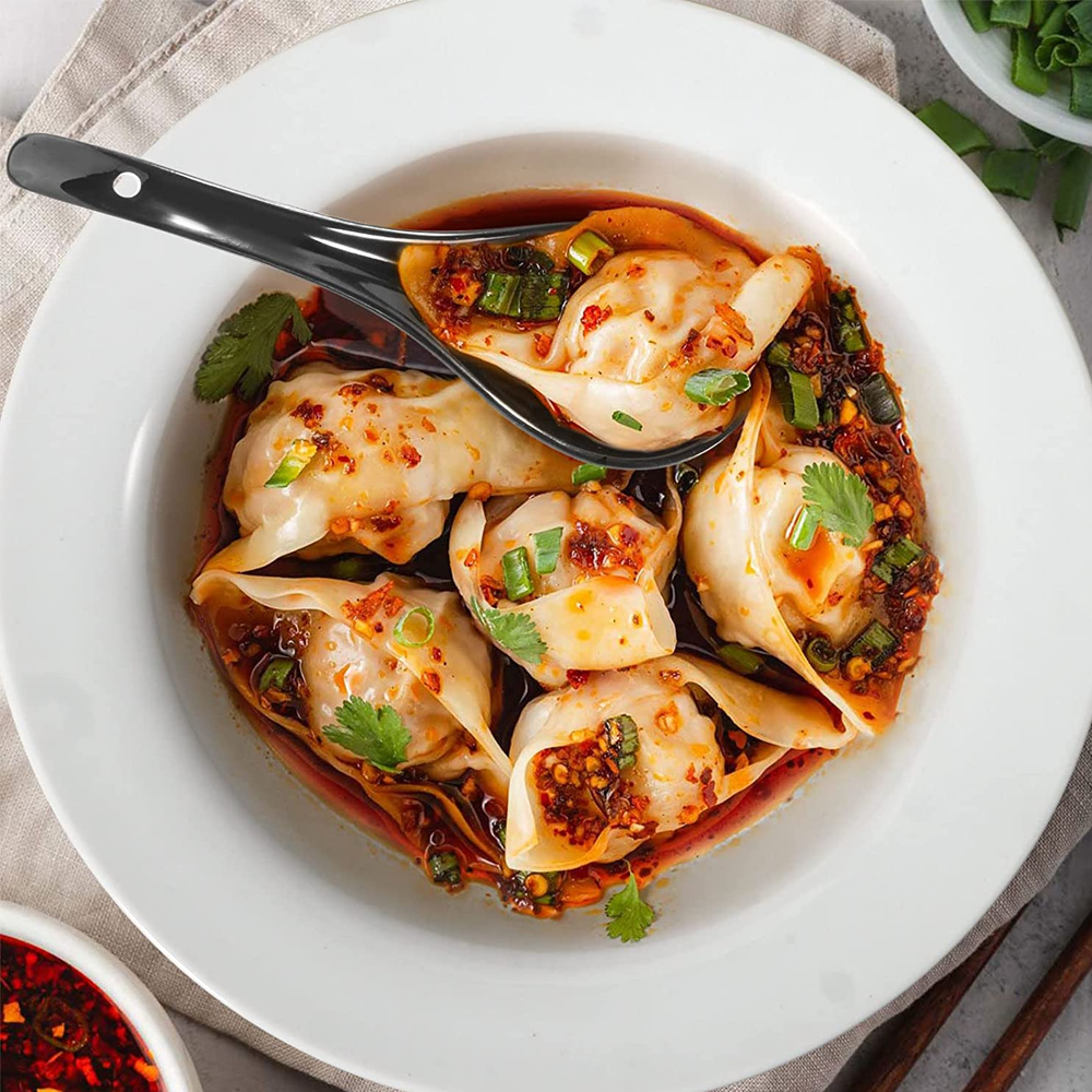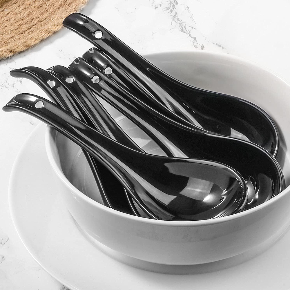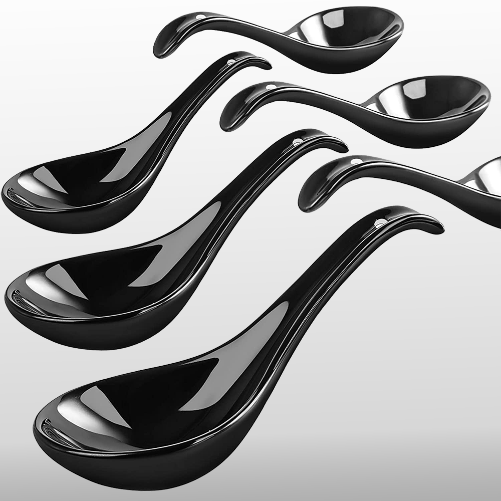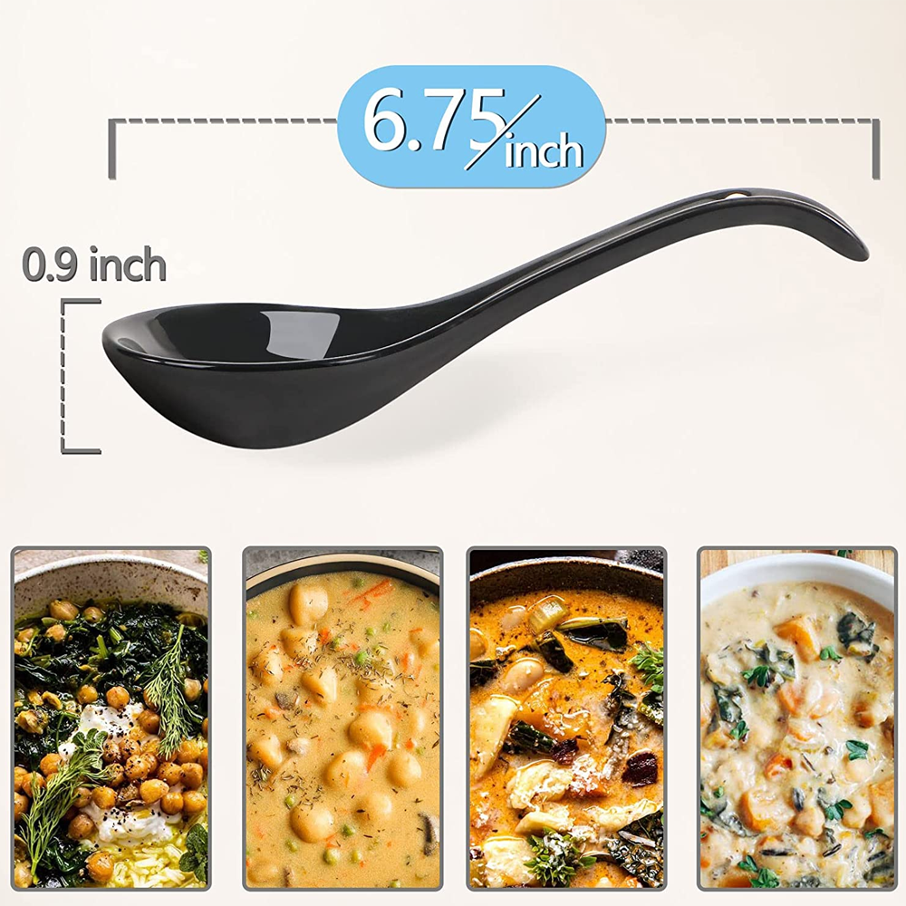 - Health & Safe: Wareland Asian soup spoon is non-plastic and non-metallic, and these soup spoons also hold up well with heat. These black spoons won’t get moldy, bend, rough, greasy, or oily after washing and drying.